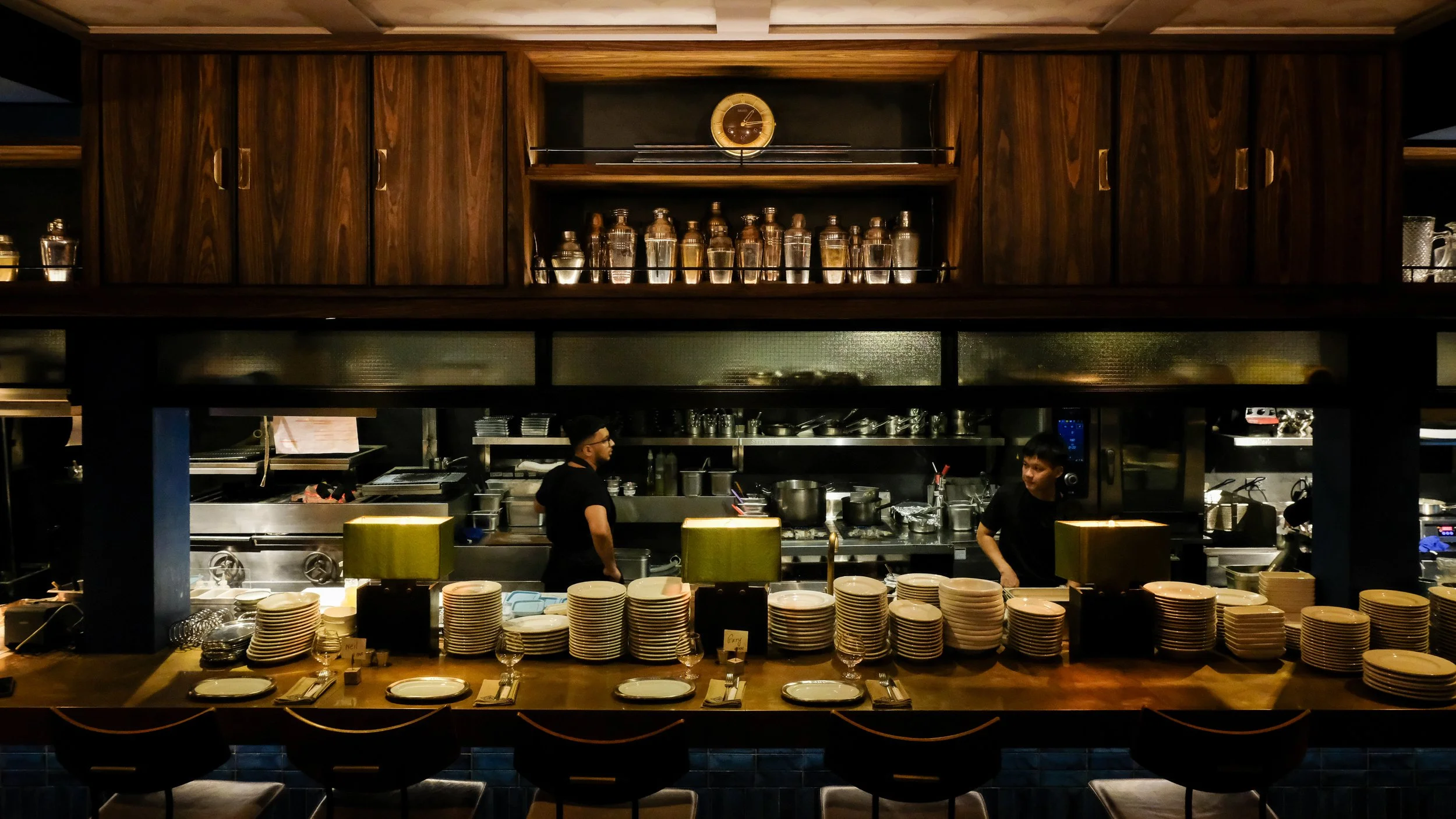 Here, the focus shifts toward fire-driven cooking and a more structured dining experience. The kitchen works with greater intensity, supported by an extensive wine cellar and a considered liquor program designed to move with the table.